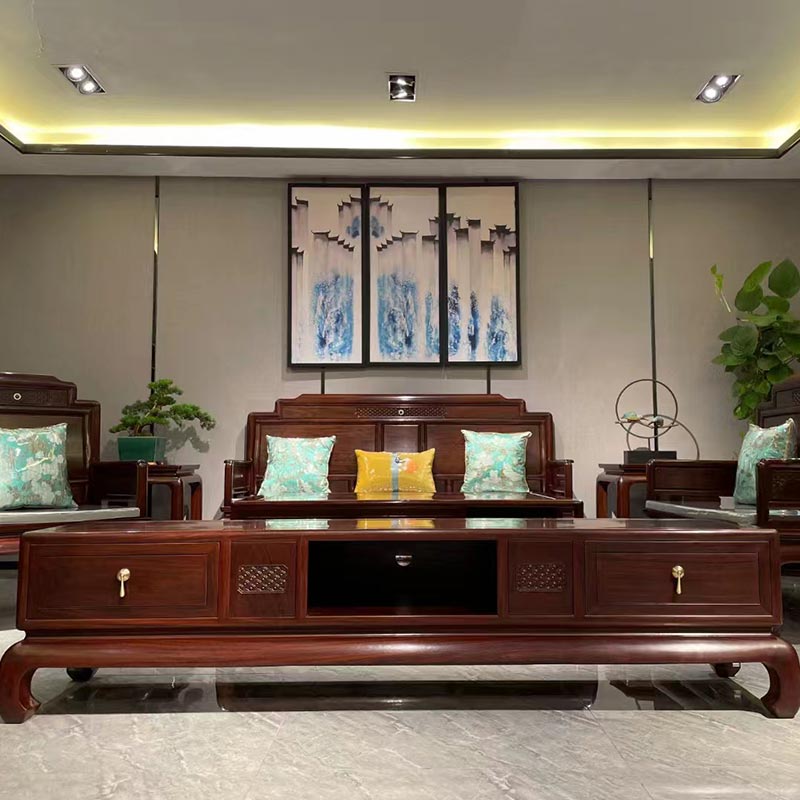 Kabinet Konsol TV Mahoni misuwur kanthi bahan-bahan berkualitas tinggi lan kerajinan sing apik banget. Tekstur unik lan warna mahoni sing anget bisa nambah keanggunan alami ing lingkungan omah. Kajaba iku, furnitur mahoni biasane duwe kapadhetan lan kekuwatan sing dhuwur, njamin daya tahan lan stabilitas.